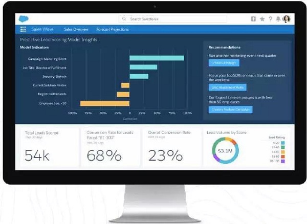 當利用如Salesforce Einstein 為您給出銷售線索評分時,同時還會深入解析分數根源。 預測性銷售線索評分將為各個銷售線索提供評分,表示轉換成業務機會的可能性,自動排列最有可能轉化和達成交易的銷售線索,以高效的挑選最有潛力的客戶,讓銷售始終關注最重要的銷售線索。 此外還能了解分數背后的原因 - 如潛在客戶來源、行業或某個其他可能決定銷售線索最終是否轉換成功的非常重要的指標因素。