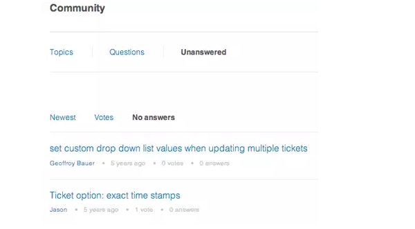 響應率或您社區中收到回復的問題的百分比可以說是這個支持渠道成功的重要指標。 理想情況下,我們希望這個比率是100%。 通過Salesforce社區后臺系統,你可以在你的社區排序問題,看看哪些問題沒有答案。