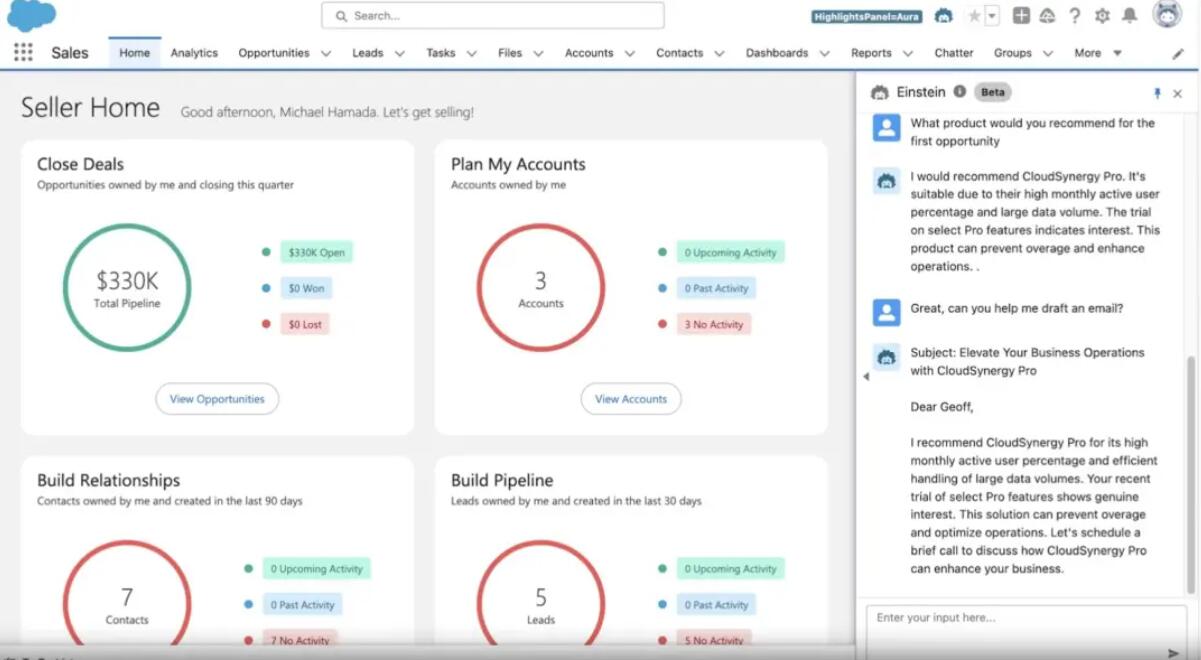 目前Einstein 1 Studio的公開應用案例主要集中在數據整合、生成電子郵件基礎文本以及自動化任務,例如撰寫和發送信息。Salesforce正以此為起點,鼓勵客戶參與進來,為AI的發展打下堅實基礎。然而在某些領域,AI的潛力足以徹底改變使用Salesforce平臺的組織的運作方式,甚至可能重塑整個B2B領域。