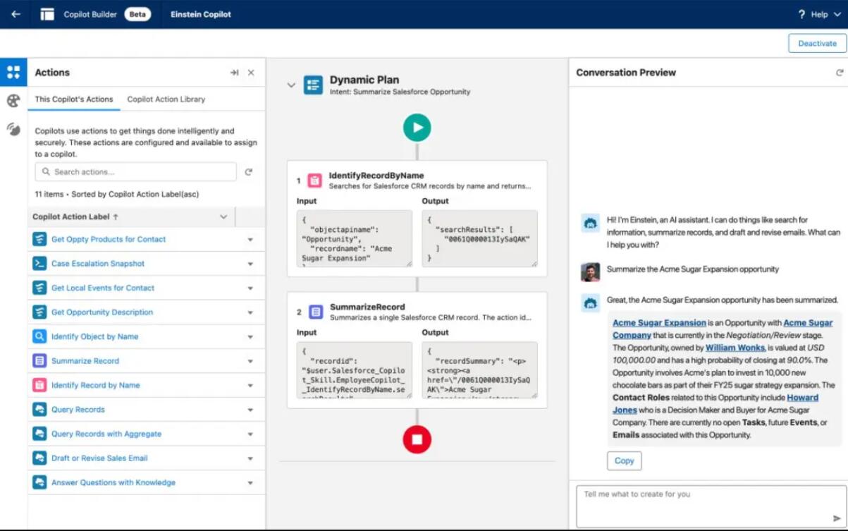 Copilot Builder現已推出公開測試版。允許用戶通過集成Apex、Flow和MuleSoft API以及生成式AI組件,為Einstein Copilot創建自定義功能。因此Copilot非常適合簡化工作流程,幫助用戶迅速完成那些復雜且耗時的任務。